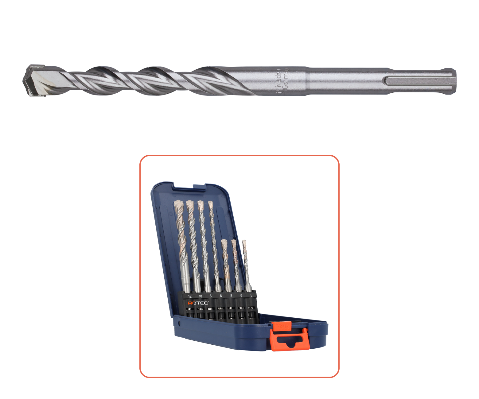 Hamerboor met SDS-plus aansluiting (ø10mm), speciale kernversterkte spiraal en een hardmetalen tip met uniek ontworpen geometrie.