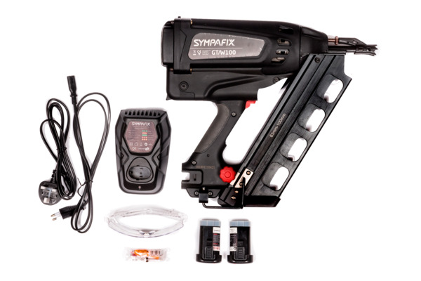Zeer krachtige GT/W100 gasschiethamer inclusief toebehoren, voor razendsnelle bevestigingen van houtverbindingen. Sterkste houtschiethamer in zijn klasse, geschikt voor rechtstreekse bevestigingen zonder boren van houtnagels tot en met maar liefst 100mm.