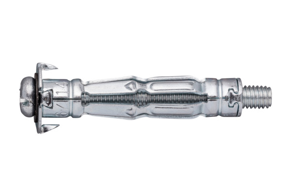 Metalen hollewandankers inclusief schroef met viervoudige spreiding voor gelijkmatige verdeling van de belasting, voor bevestigingen op (gips)plaat materialen. Te monteren met hollewand tang #70882. Bevestigingsdikte (= plaat + te bevestigen werkstuk) 3-8mm.