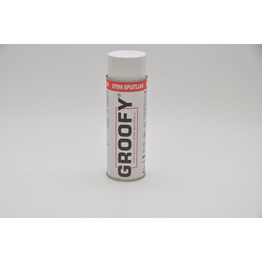 Voor het verlijmen van kleine oppervlakten is de Groofy EPDM Spuitlijm verkrijgbaar in spuitbussen van 750ml. Het verbruik is ongeveer 2-3 vierkante meter per spuitbus.