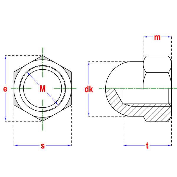 – Zeskant dopmoer volgens DIN 1587 norm
