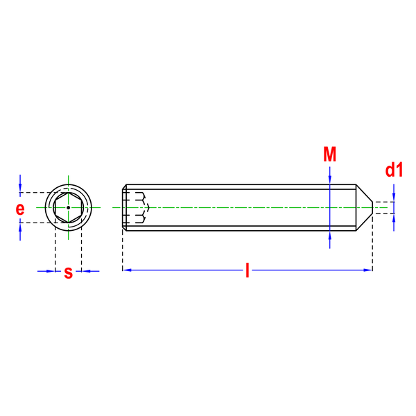 – Binnenzeskant stelschroef zonder kop, volgens DIN 914 norm