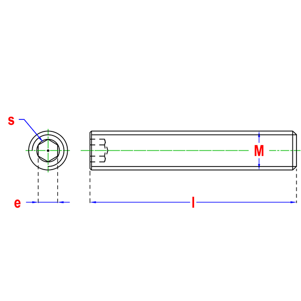 – Stelschroef volgens DIN 913/ISO 4026 norm