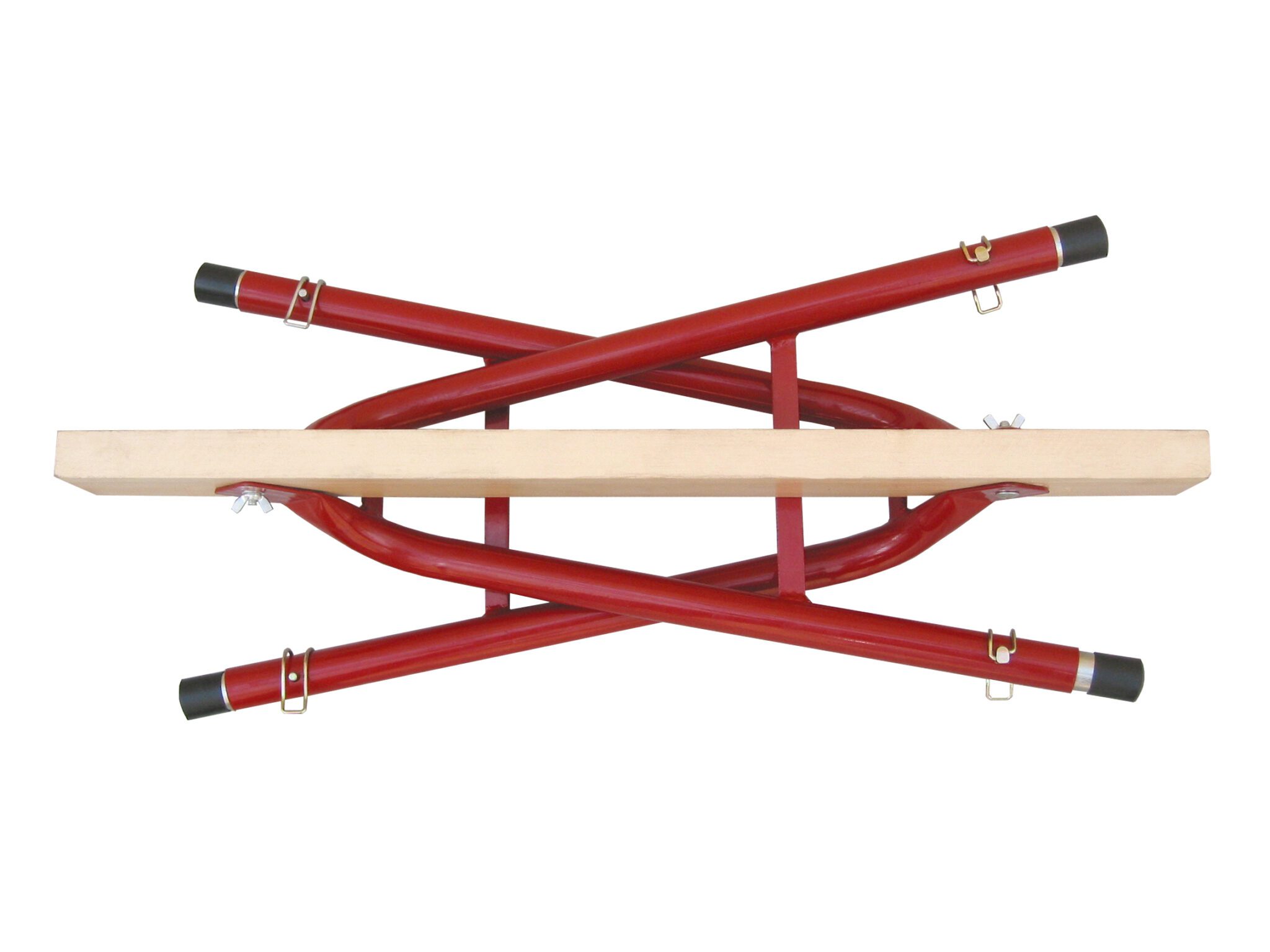 De schragen zijn in hoogte verstelbaar (60-70-80 of 90 cm) en voorzien van een schuifvergrendeling welke ongewenst inklappen voorkomt.